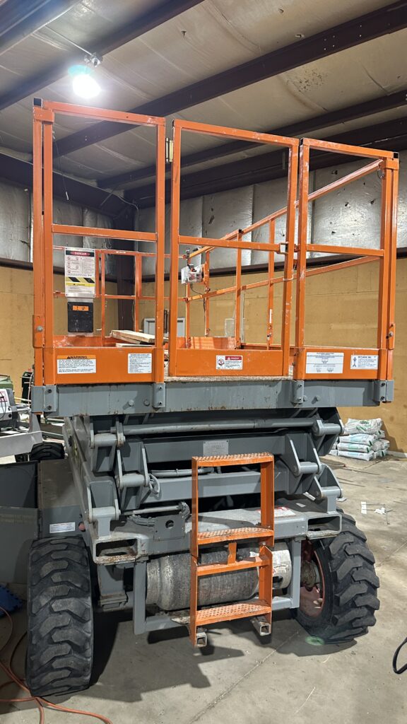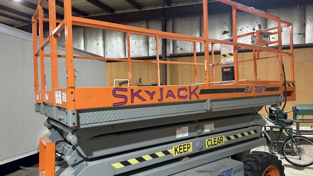 Selling AS IS our used Sky Jack lift. 16'x10' deck. 27 foot full extension height 33 feet working height. Good operating condition. The deck extends out 5 foot and can hold 500 lbs on the extension. 4 wheel drive rough terrain. Runs on gasoline or LP via switch. The weight of the lift is approx 7,600 lbs. Air tires. 1,405 hours on odometer. Viewing and test driving by appointment only M-F 8 am to 4:30 pm.