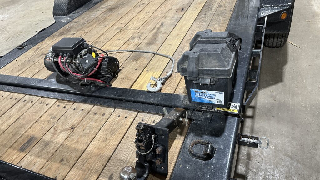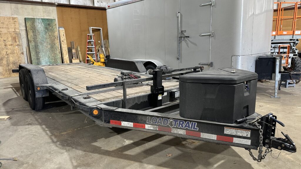 Selling As Is our used trailer for $7,900.00. We bought it new 5 years ago and we have limited hours using it. Works great. Bed tips backwards for easy loading of lifts, ATV, etc. Power winch is controlled with a remote. Dimensions: 83" wide x 17' 7" long plus an additional 2' between the winch and the hand crank. Viewing by appointment only. Cash or cashier's check only.